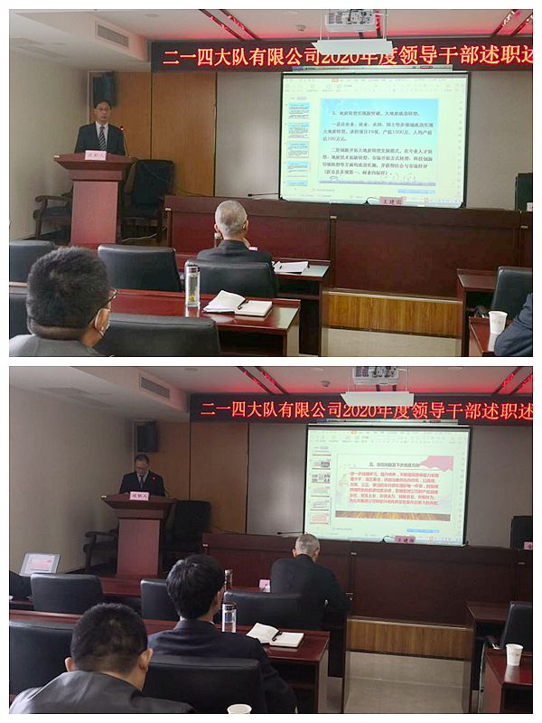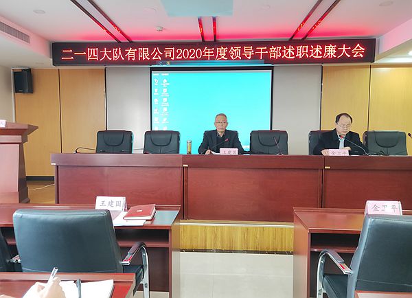 2021年1月12日,集團(tuán)公司黨委副書(shū)記王建國(guó)率黨建工作考核組,對(duì)二一四大隊(duì)有限公司2020年黨建工作目標(biāo)任務(wù)完成情況、領(lǐng)導(dǎo)班子及其成員履職進(jìn)行黨建目標(biāo)綜合考核,召開(kāi)了領(lǐng)導(dǎo)干部述職述廉大會(huì),會(huì)議由集團(tuán)公司黨委工作部部長(zhǎng)金衛(wèi)平主持,公司領(lǐng)導(dǎo)班子成員、中層干部和職工代表共35人參加了會(huì)議。