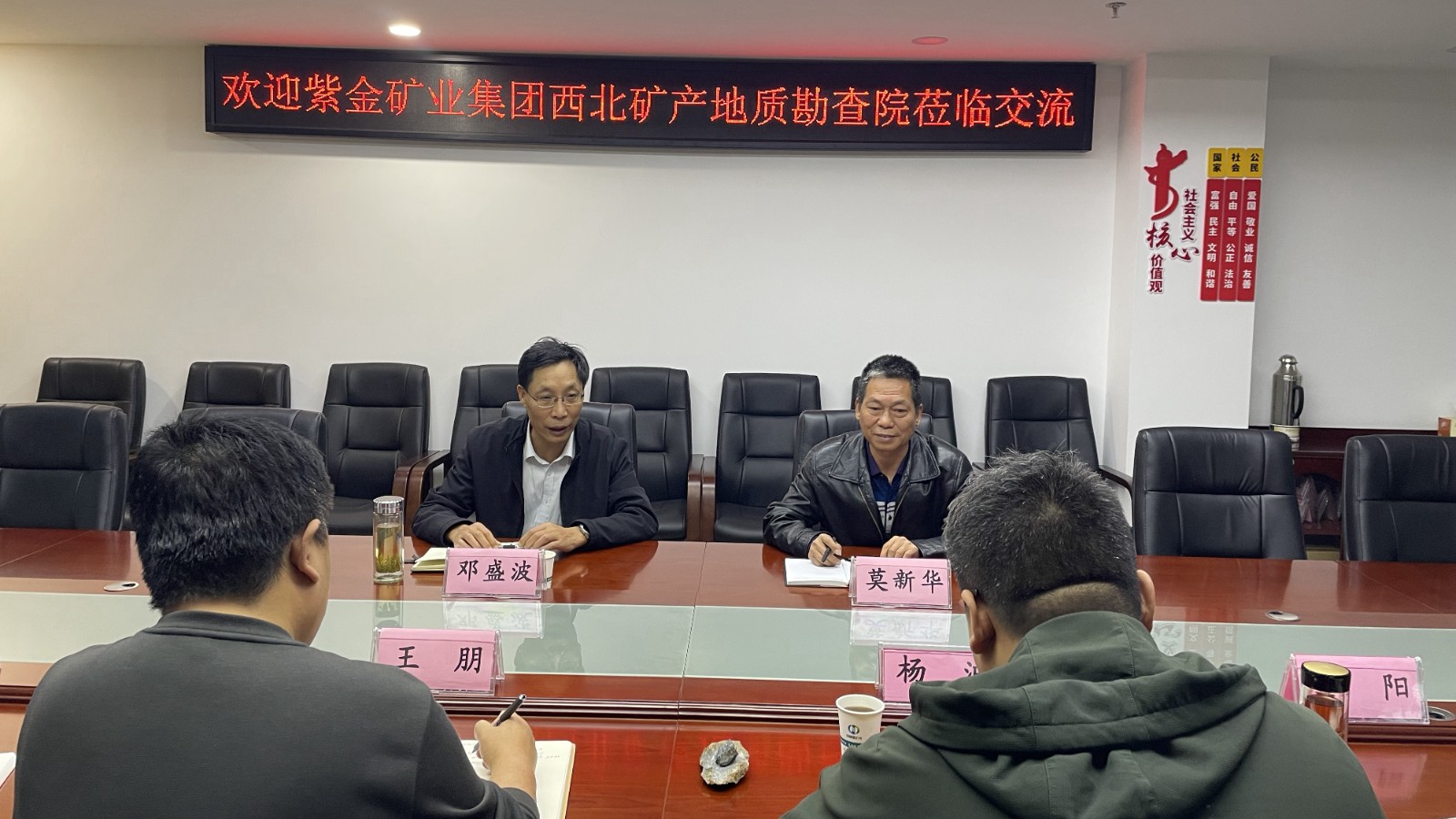 11月4日,紫金礦業(yè)集團西北礦產(chǎn)地質(zhì)勘查院院長莫新華一行蒞臨公司考察交流。公司黨委書記、董事長鄧盛波參加座談。