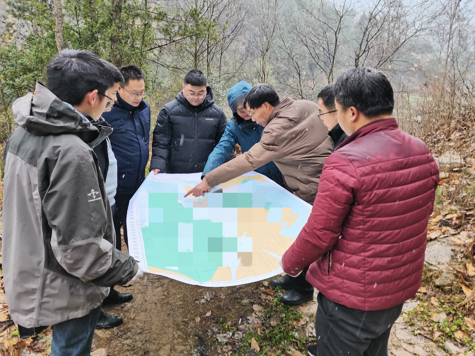 2月2日,公司黨委書記、董事長鄧盛波攜工會主席董興武、副總經(jīng)理、總工程師王朋深入野外一線到黃泥坪項目進行慰問并指導(dǎo)檢查工作,黨群工作部部長馮永強、總工辦主任宗曉華、地調(diào)院院長高政偉陪同,陜西省資深礦產(chǎn)勘查專家王民良受邀指導(dǎo)工作。