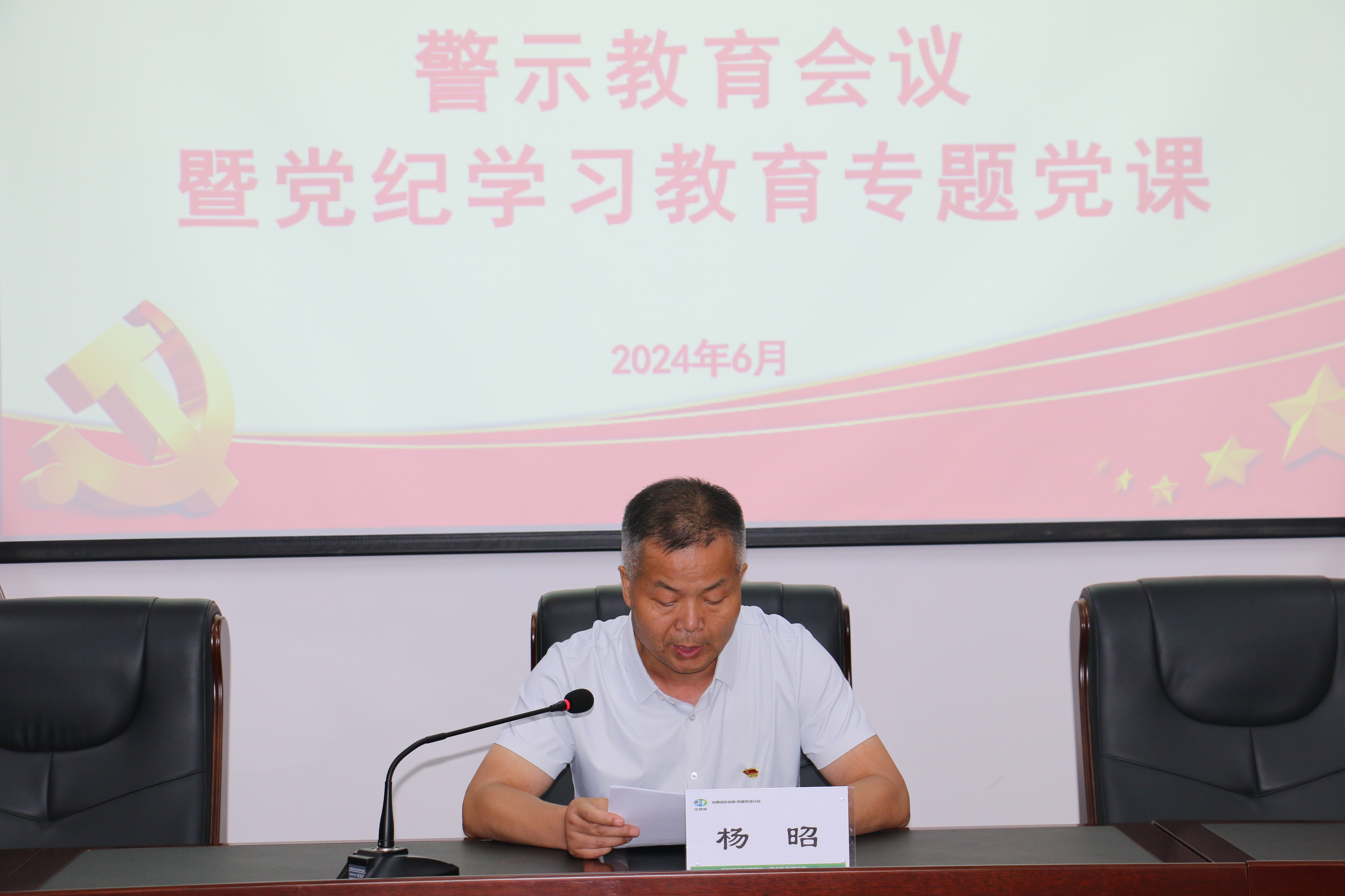 紀委書記楊昭通報了陜西省近年查處的國有企業黨員干部違紀違法案例及警示錄,使每一名黨員受到警示、得到教育,引以為戒、警鐘長鳴,做到政治從嚴、治吏從嚴、作風從嚴、反腐從嚴,切實增強拒腐防變的思想自覺、政治自覺和行動自覺,在新的趕考上篤行不怠、奮力拼搏,為奮力譜寫高質量發展新篇章提供堅強的紀律保證。