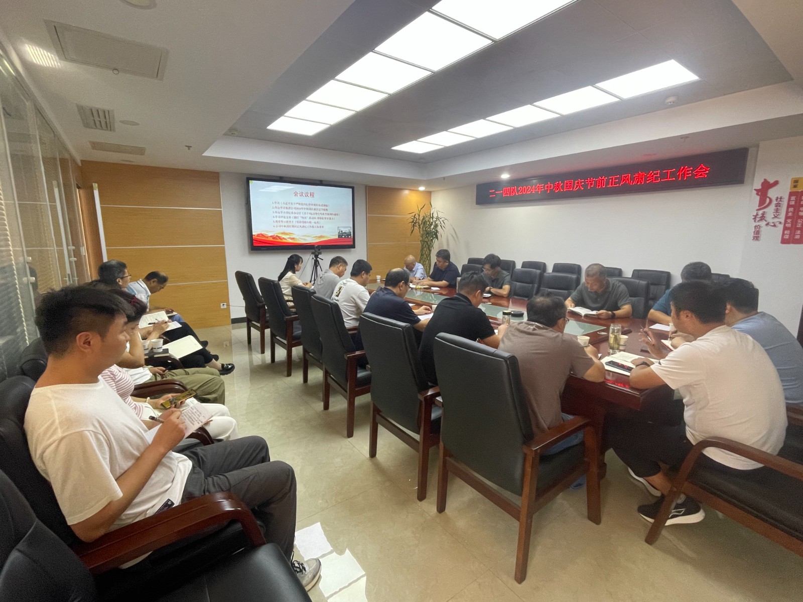 會議學(xué)習(xí)了《習(xí)近平關(guān)于嚴明黨的紀律和規(guī)矩論述摘編》;傳達了集團公司紀委2024年中秋國慶廉潔過節(jié)提醒;通報了省紀委辦公廳關(guān)于5起違規(guī)吃喝典型案例;集中學(xué)習(xí)了中國紀檢監(jiān)察報《緊盯“四風(fēng)”新動向 增強監(jiān)督穿透力》評論文章;集體觀看了廉政教育片《堅持受賄行賄一起查》;安排部署了公司中秋國慶期間正風(fēng)肅紀相關(guān)工作及要求。