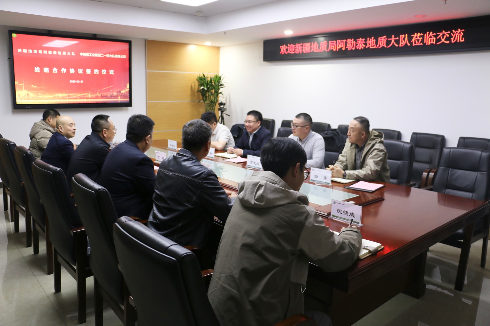 2025年3月21日,新疆地質局阿勒泰地質大隊黨委副書記、大隊長蔣世新帶隊到中陜核工業集團二一四大隊有限公司進行座談交流,并簽訂戰略合作協議。公司黨委書記、董事長付星主持會議,公司黨委委員、總經理王朋、副總經理冉軍林以及地勘相關部門負責人參加會議。