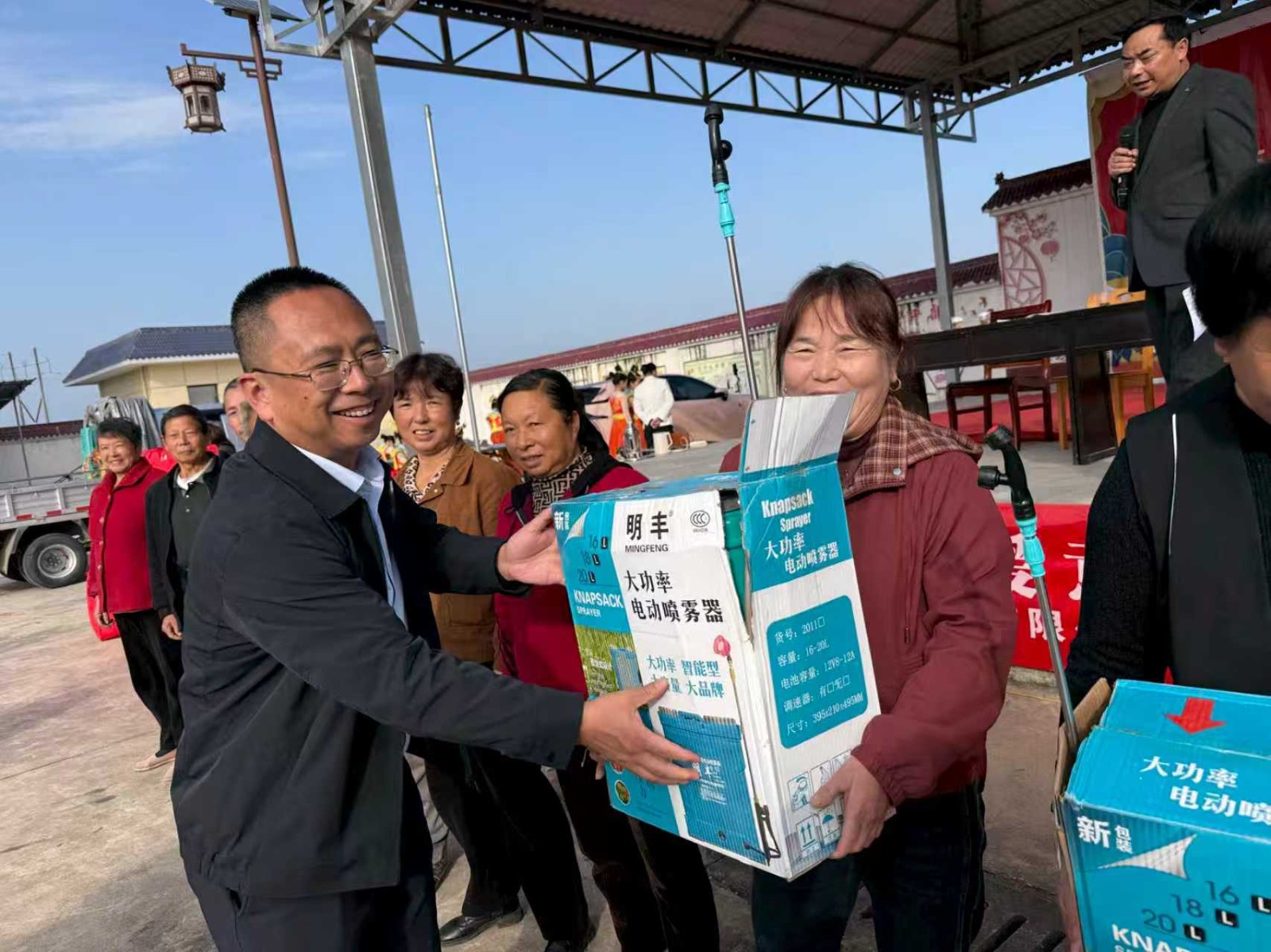 在備受期待的獎品與慰問品發(fā)放環(huán)節(jié),付星與村黨支部工作人員共同為評選出的種植大戶送上電動噴霧器,助力農(nóng)業(yè)生產(chǎn);同時為村80歲及以上的老年送去精心準備的慰問品,傳遞對老年人的關(guān)心與關(guān)愛。活動期間,還為大家準備了一場豐富多彩的文藝演出,精彩節(jié)目接連上演,贏得了陣陣掌聲。