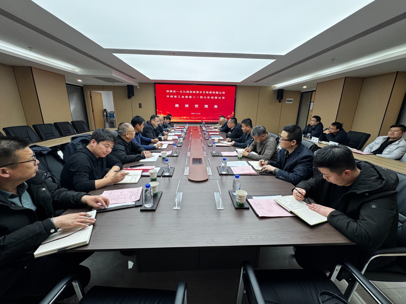 2025年12月25日下午,陜西省一三九煤田地質(zhì)水文地質(zhì)有限公司黨委副書記、總經(jīng)理王文飛一行,赴中陜核二一四隊(duì)開展座談交流,雙方圍繞技術(shù)創(chuàng)新應(yīng)用與項(xiàng)目協(xié)作事宜深入探討,凝聚合作共識。