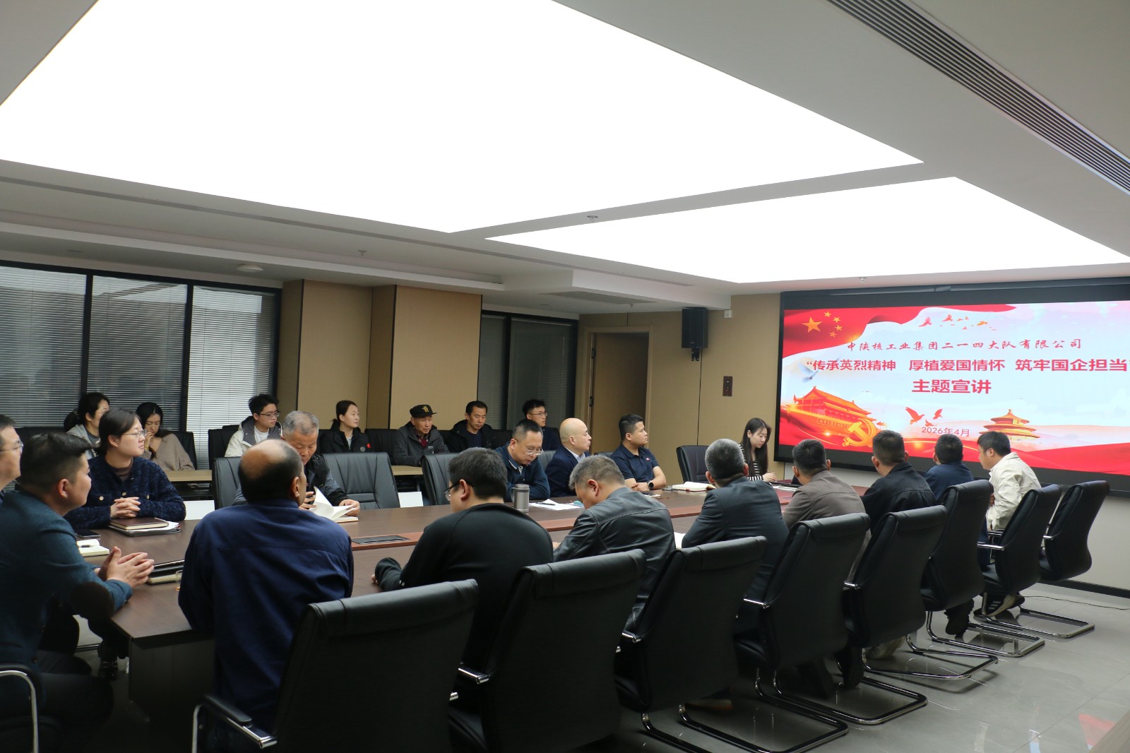 4月3日,二一四隊在公司11樓會議室舉行清明節主題宣講會,會議圍繞先烈精神時代內涵、國企“三重擔當”、崗位建功實踐等內容展開,深刻闡釋先烈與英雄“忠誠堅守、為民奉獻、求真務實、奮勇爭先”的核心要義,精準錨定愛國情懷與國企使命的內在契合點,進一步引導廣大干部職工傳承紅色基因、勇擔時代重任。會議強調,作為國有企業,二一四隊要始終堅守政治擔當、社會責任擔當與發展擔當,把對英烈英雄的緬懷崇敬,轉化為履職盡責、擔當作為的實際行動,融入各項工作全過程,以實干實績詮釋國企擔當、踐行愛國初心。