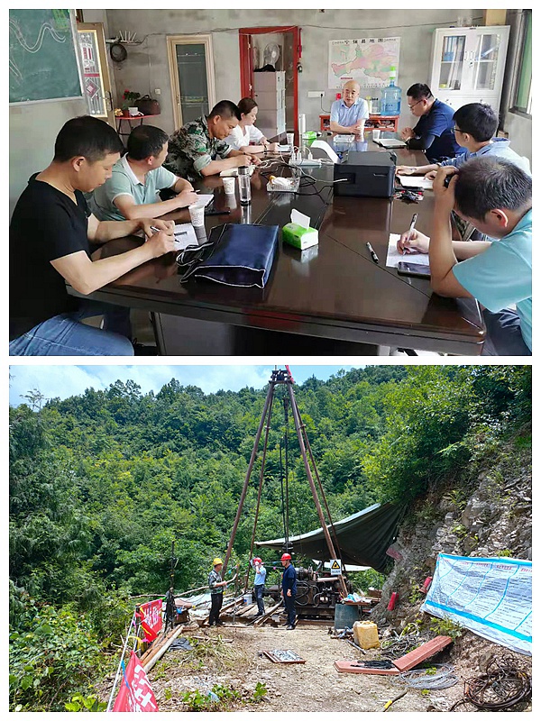 7月14日,公司工會主席、副總經理董興武、副總經理冉軍林、副總工程師祝虎林等一行到地調院寧強中壩項目檢查指導工作。地調院副院長焦宏劍陪同檢查。