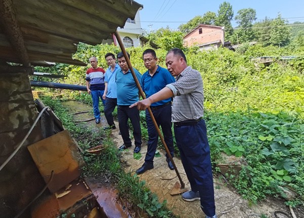 6月29日,公司副總經理董興武、總工程師王朋攜公司安防部部長董連志一行到西鄉縣五里壩硫鐵礦廢水治理項目檢查指導工作,水工環調查院院長余鋼陪同。