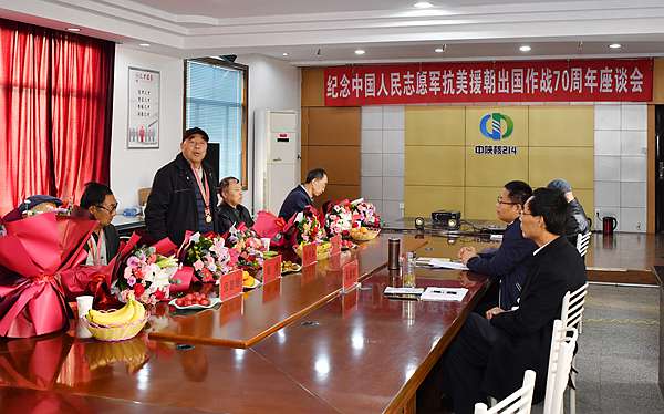 今年是中國人民志愿軍抗美援朝出國作戰70周年,為大力弘揚以愛國主義和革命英雄主義為核心的抗美援朝精神,10月23日上午,公司在城固基地舉辦抗美援朝出國作戰70周年座談會,邀請四名參加抗美援朝出國作戰的老戰士及家屬參加。座談會由公司副總經理、工會主席董興武同志主持。