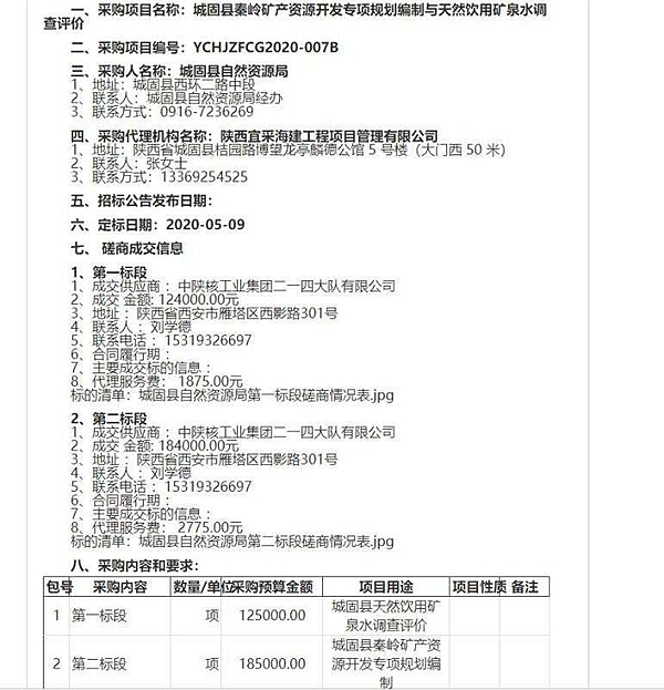 5月14日,從陜西省政府采購網(wǎng)獲悉,公司成功中標(biāo)《城固縣秦嶺專項規(guī)劃編制與天然飲用水調(diào)查評價》項目2個標(biāo)段。
