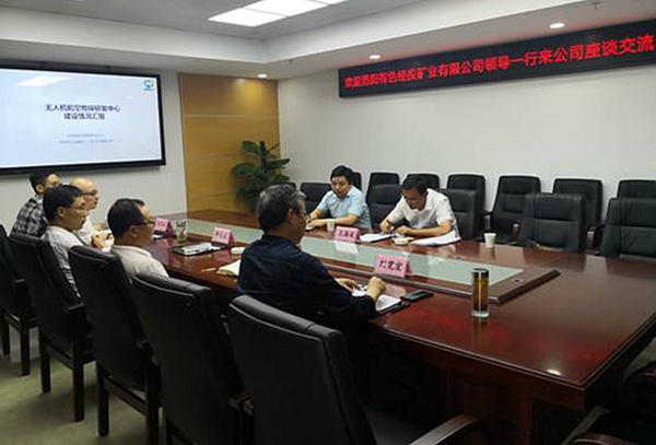 鄧盛波首先對(duì)況鍋明一行的到來表示熱烈歡迎,介紹了公司近況及發(fā)展思路,航空物探研發(fā)中心沈銘成博士對(duì)公司無人機(jī)航空物探的優(yōu)勢(shì)與技術(shù)成果作了匯報(bào)。況鍋明也介紹了洛陽有色經(jīng)投礦業(yè)有限公司發(fā)展情況,并對(duì)無人機(jī)航空物探技術(shù)應(yīng)用作了深度交流,隨后雙方對(duì)洛陽有色經(jīng)投礦業(yè)公司所屬礦權(quán)物探找礦技術(shù)方法進(jìn)行了重點(diǎn)探討,對(duì)二一四大隊(duì)有限公司提出無人機(jī)航空物探方法與地面物探方法結(jié)合的初步技術(shù)方案給予了肯定。