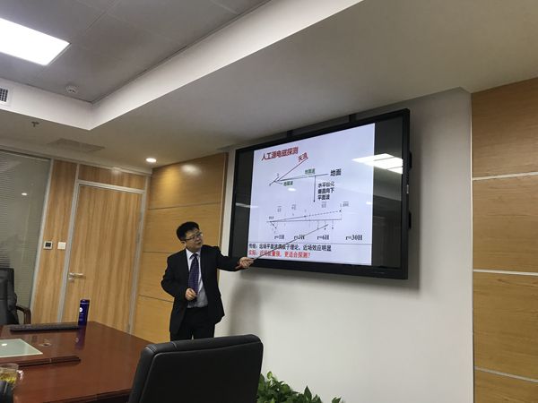 4月30日,二一四大隊有限公司邀請中國科學院地質與地球物理研究所薛國強研究員作“近源電磁探測方法技術”專題報告會,公司董事長鄧盛波、總經理司金強、副總經理冉軍林以及物化探院技術人員參加了報告會。