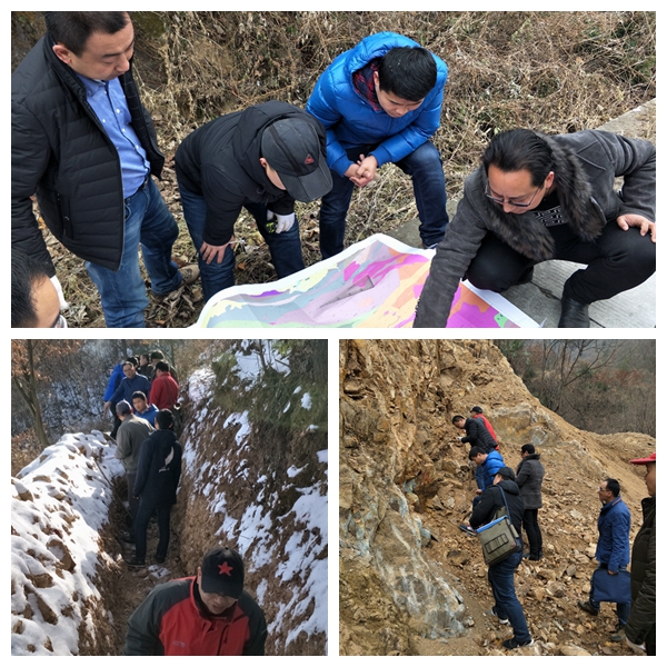 2018年1月29日至2月1日,公司總工程師王義忠、地調院常務副院長高政偉、總工焦宏劍帶領地調院技術骨干,對公司實施的寧強中壩、南沙河、黃泥坪,城固花廟子、城固高純硅等地勘項目新發(fā)現(xiàn)的金礦線索進行了實地調查,圍繞找礦突破進行了研討交流。