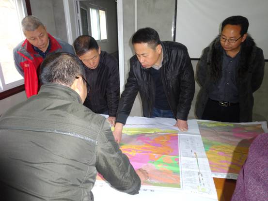 隨后,田社生總經理等一行人冒著嚴寒、頂著風雪,前往礦區實地察看,對堅守在野外一線項目人員表示了親切慰問,并和同志們一道細致研究項目管理、項目進展、安全管理、工作質量中出現的具體問題。他就項目下一步工作提出五點指導性意見:一是要高度重視,克服困難,加快工作節奏;二是要樹立信心,工作區位于石墨匯戰區的中部,東、西兩側找礦工作已取得突破,成礦條件較好;三是要統籌安排,加強對工作區東側及空白區的路線追索工作,爭取獲得突破,為后續工作的實施提供依據;四是要保持溝通,積極與周邊地勘單位及地勘基金管理部門保持聯系、溝通,保證工作質量和工作進度;五是要確保施工安全、資料安全以及人員車輛的安全,項目部應高度重視,強化安全意識。