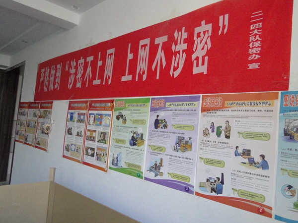 二是廣泛宣傳,全面教育。保密宣傳月活動開展以來,公司投入近2000元,購買保密宣傳教育圖書14冊、保密教育音像制品3套,保密宣傳掛圖9套60多張、保密宣傳橫幅3條,先后向公司涉密人員分發(fā)傳閱學習,并在城固基地和西安辦公樓張貼懸掛各類宣傳掛圖和橫幅,組織廣大員工進行參觀學習。期間,公司領導班子成員在城固基地經(jīng)營督導之余,集體參觀學習了各類保密宣傳掛圖資料展覽。5月27日,公司組織涉密人員及其他員工進行了保密知識培訓,邀請陜西省保密宣講大隊成員、西安信安保密技術研究所所長石梁老師,結合公司實際學習保密法律法規(guī)、保密工作形勢、失泄密事件、做好保密工作對策等方面內(nèi)容,進一步增強了廣大員工的保密意識。