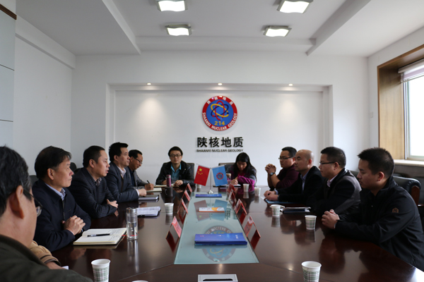 10月27日,湖南省核工業地質局三〇四大隊副大隊長張昭賢一行四人來公司交流考察。公司總經理田社生、黨委書記李新平、副總經理李世偉、總工程師王義忠與張昭賢一行親切座談交流。