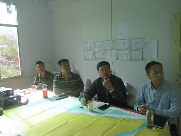 楊建勛書記一行首先在南沙河項目部聽取了項目負責人高田的工作匯報,了解了項目進展、取得的成果和現階段存在的問題。田社生總經理隨后補充發言,提出了項目組現階段工作重點放在車渡地段,同時兼顧唐渡、麻地河地段,保證續作項目的順利推進;同時,金家溝、張家祠地區的工作不能放棄。
